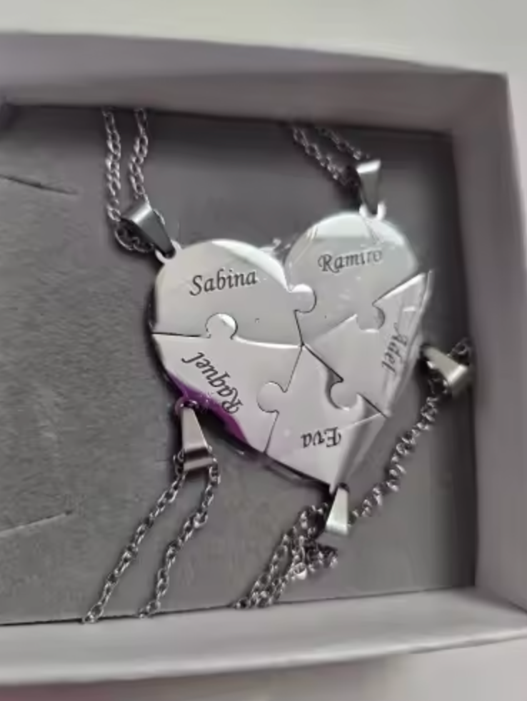 Was wäre, wenn Sie Ihre Liebsten immer nah bei Ihrem Herzen tragen könnten? Mit Liaison™ repräsentiert jedes Puzzleteil eine geliebte Person, sorgfältig graviert, um eine einzigartige und unzerstörbare Liebe zu symbolisieren.